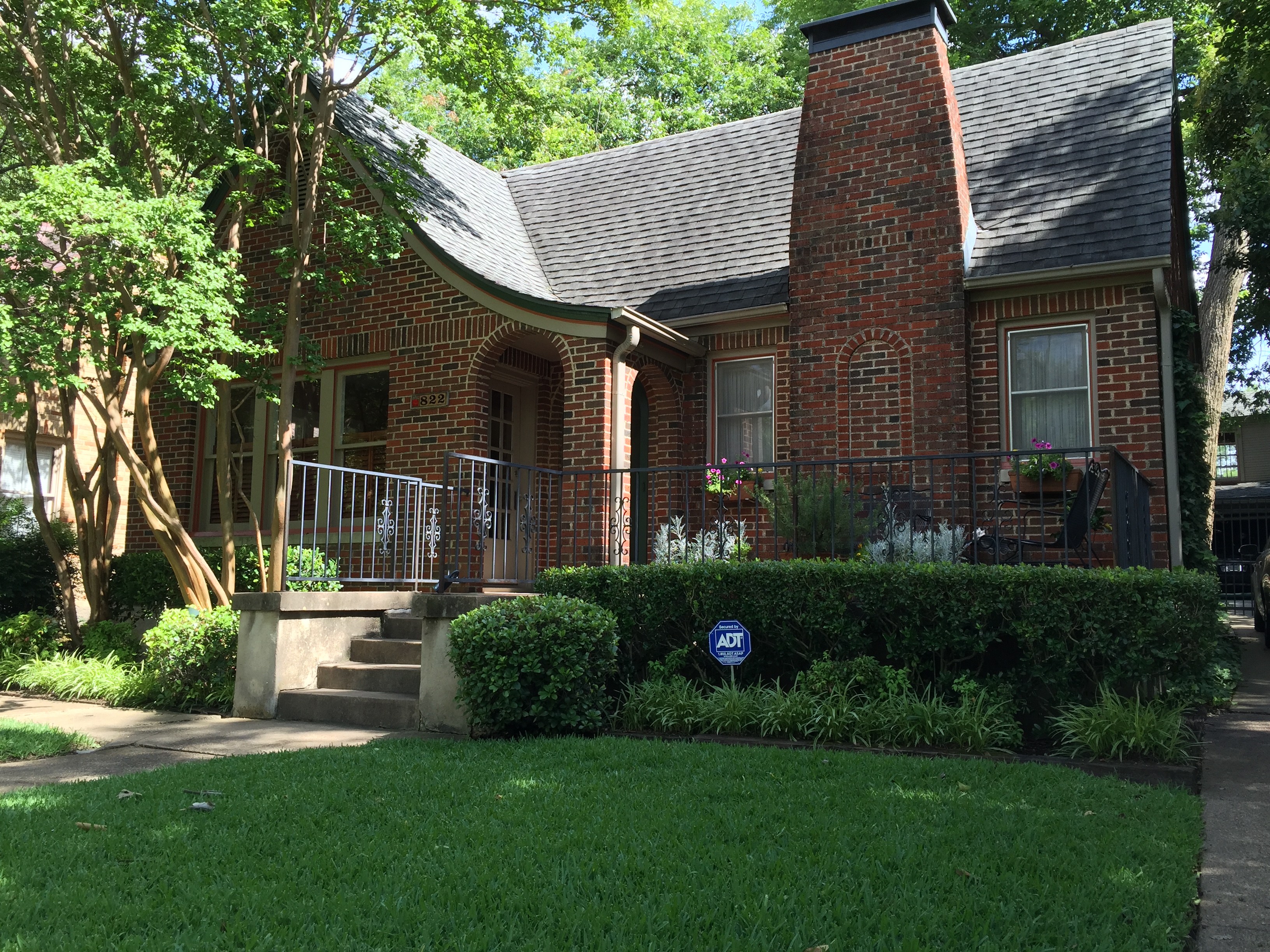 The second is 822 Stewart Dr. This wonderful Tudor has a north-facing porch, and mature trees, so the whole thing is kept out of direct sun. And the porch is extra long so you can invite some buddies over to share in your coolness. Double points to this home for also having a pool.